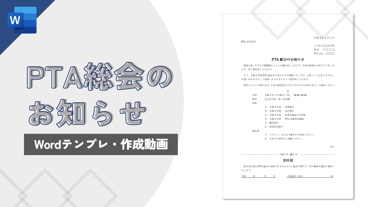【Word】テンプレート・動画 PTA総会のお知らせ