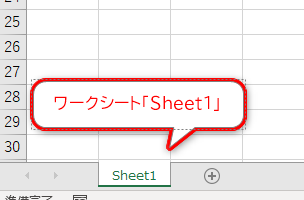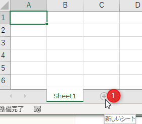 ワークシート「Sheet1」の右にある「+」をクリック