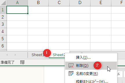 「Sheet2」を右クリック→[削除]をクリック