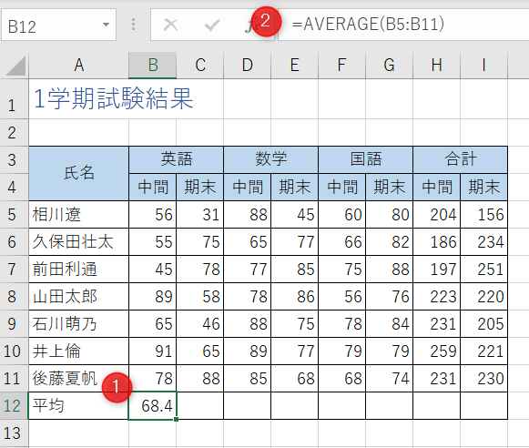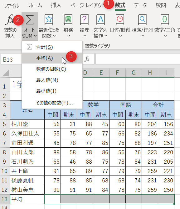 数式で平均点を求める