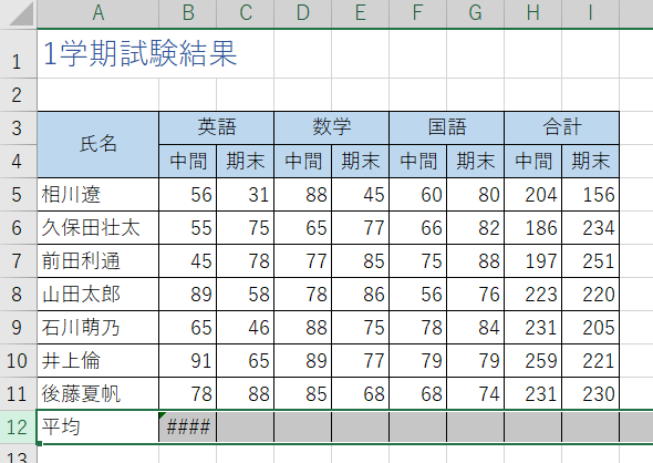 平均のセルが「####」という表示になる