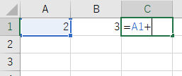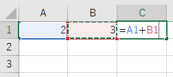 セルC1にはセルA1とセルB2を足した結果である「5」が表示されましたね。