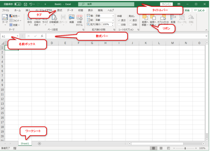 Excelの画面構成
