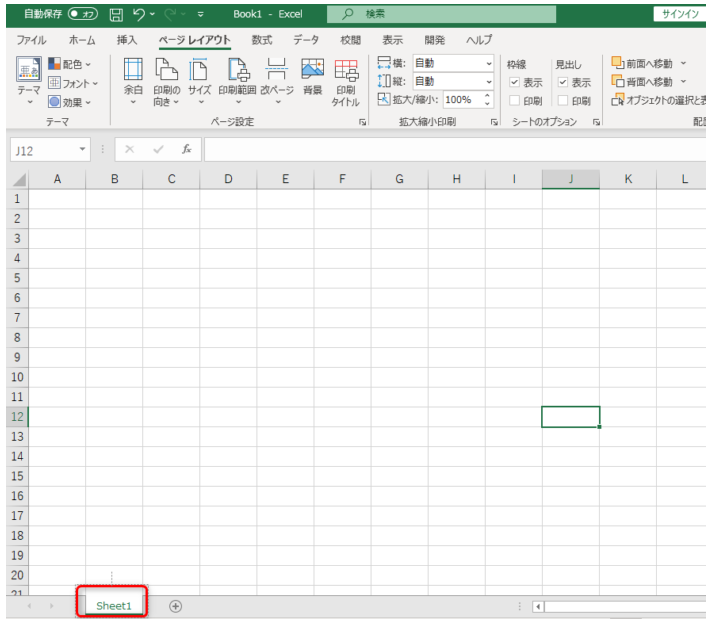 このワークシート名(シート名)は「Sheet1(シートいち)」です。