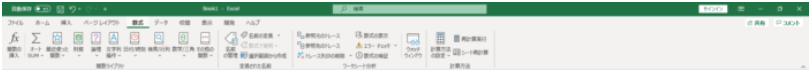 画面上部に色々な名前が並んでいますが、全てエクセルを使用する上で使用する、文字の装飾や、関数挿入、グラフ挿入、集計、印刷などの操作のツールボタン等が並んでいます。