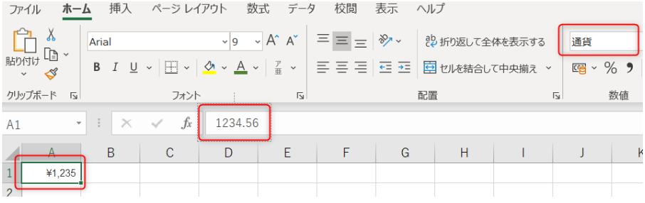 通貨形式になると四捨五入され、自動で「¥」マークがつき、3桁区切り表示になります。