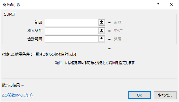「SUMIF関数の引数」ダイアログが表示されるので「範囲」の四角い枠をクリック