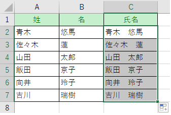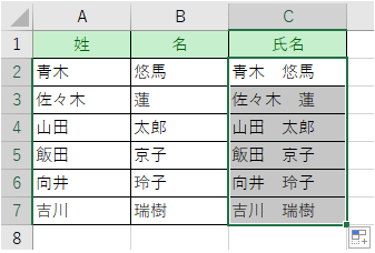 フラッシュフィルで2つの列の姓と名を結合する