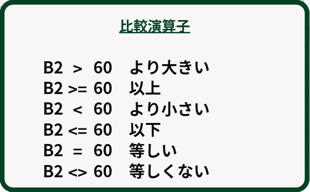 合否判定だけでなく、例えば「在庫が10以下なら要補充」とか「納期が過ぎたら要連絡」みたいに使えるんですね。
