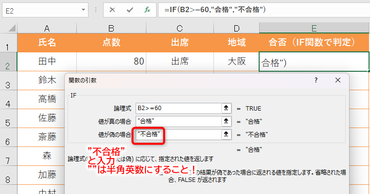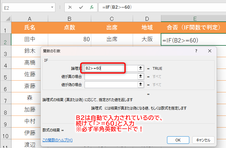 点数から「合格」か「不合格」を自動で出せたら便利ですよね?