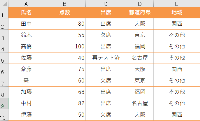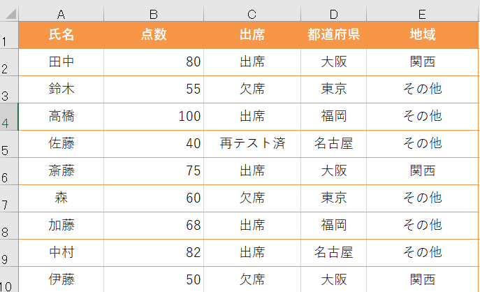 地域が「大阪」なら「関西」、それ以外は「その他」と表示します。