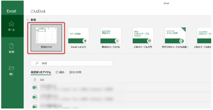 エクセルを起動したら、新規ファイルを作成します。
