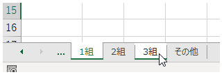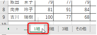 キーボードの[Ctrl]キーを押しながら「3組」のシートをクリックすると、「1組」「3組」の2つのシートが選択される