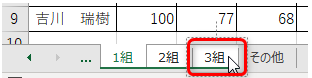 キーボードの[Shift]キーを押しながら「3組」のシートをクリックすると、「1組「2組」「3組」の3つのシートが選択される