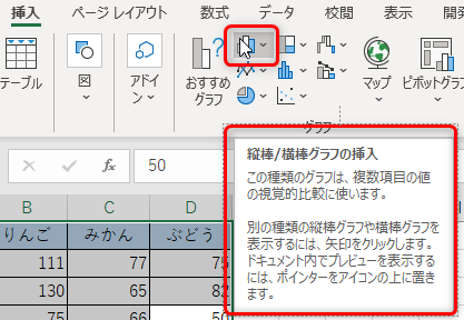 縦棒グラフの挿入方法