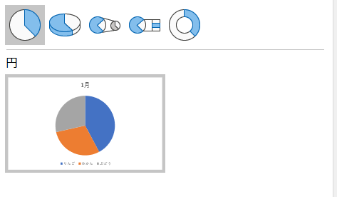 上記同様に円グラフを選択すると、円グラフが挿入されます。